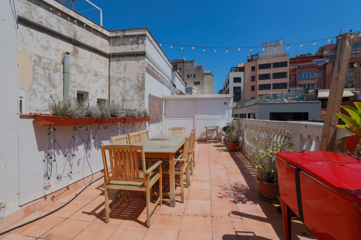 Pero sin duda, el verdadero lujo de este inmueble es su gran terraza privada de 38 m2, ideal para quienes buscan un espacio exterior donde desconectar sin renunciar a la vida urbana. Con múltiples posibilidades de uso —desde zona chill-out hasta comedor al aire libre— y equipada con una práctica área de lavandería con armarios, esta terraza se convierte en una extensión natural del hogar.